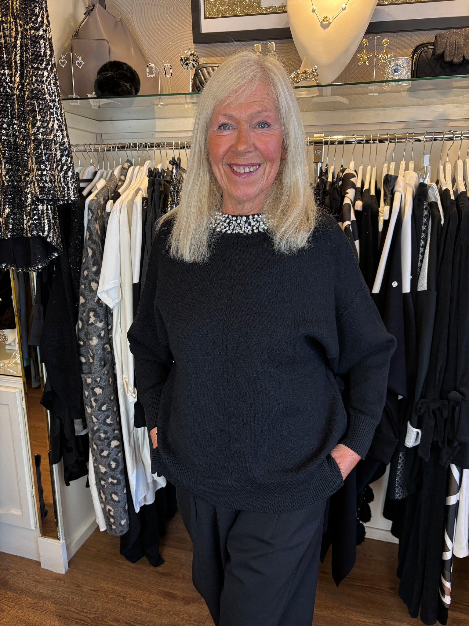 Malissa J Black Bling Neck Jumper wf2544